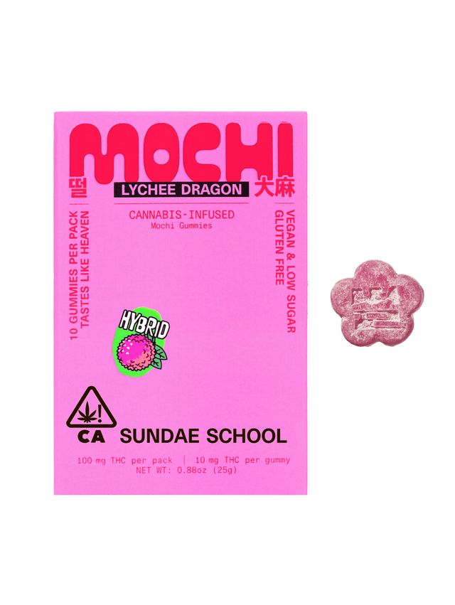 A 10-pack of tapioca gummies infused with fresh lychee and 10mg of THC coated with pink dried dragonfruit beetroot powder. Texture is more mochi than gummy, inspired from Sundae School's favorite summer furry fruit Lychee and 떡 (rice cake). These gummies are vegan and produce a balanced, hybrid effect.