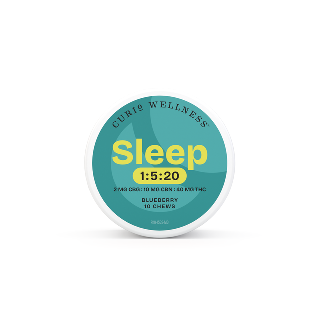 Discover Sleep 1:5:20 Blueberry Chews, part of Curio Wellness’ Best Self Collection. Thoughtfully formulated for those who prefer a stronger evening experience, these chews feature a 1:5:20 ratio of CBG, CBN, and THC (2mg CBG : 10mg CBN : 40mg THC) for a bold, balanced profile that’s designed for dependable enjoyment.