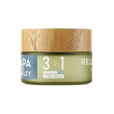 Papa & Barkley's 3:1 Releaf Balm carries a 3:1 ratio of CBD:THC and a mixture of cannabis, coconut oil, beeswax, and essential oils to create a thick, balmy topical used for general discomfort, aches, and soreness. Non-pyschoactive. From California-based Papa & Barkley.